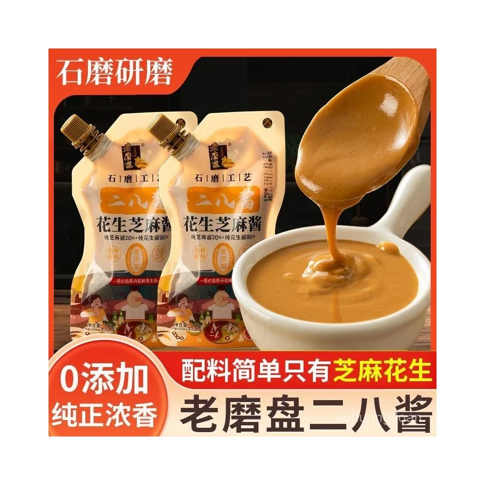熱賣中【優先購】老磨盤二八醬芝麻花生醬200g免調麻醬火鍋蘸料涼拌熱幹麵家用袋裝