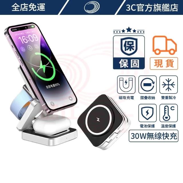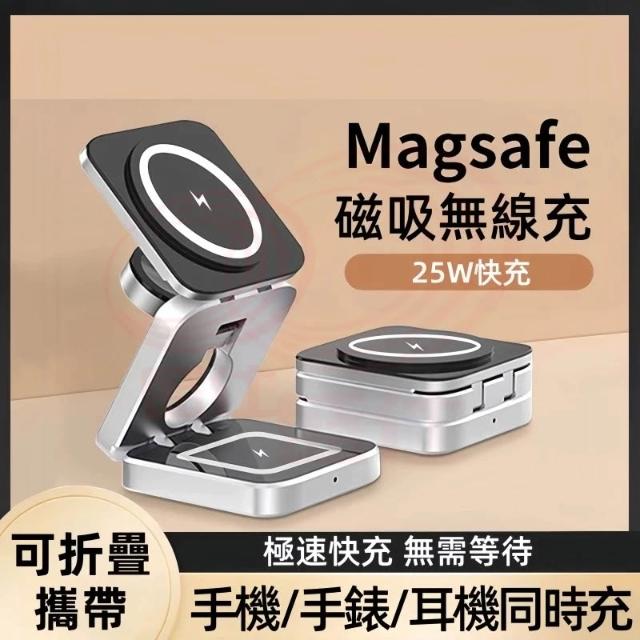 三合一無線充電器 無線充電器 MagSafe無線充電盤 磁吸無線充電 支援三星/蘋果 手機手錶耳機