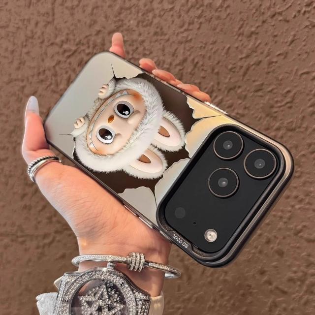 白色可愛卡通手機殼|矽膠防摔+支架設計|適用iPhone 11/12/13/14/15/16/17 Pro Max/