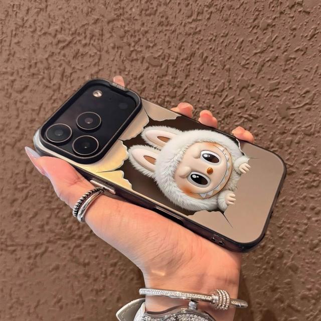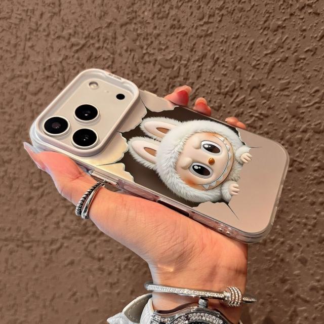 白色可愛卡通手機殼|矽膠防摔+支架設計|適用iPhone 11/12/13/14/15/16/17 Pro Max/