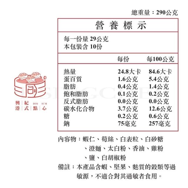 (興紀)水晶蝦餃皇 10粒/盒 港式點心/蝦餃/鮮蝦/港點/港式飲茶/茶餐廳/點心