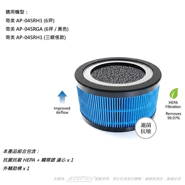 CHIMEI 奇美適用 AP-04SRH1 AP-04SRGA 360度全淨化空氣清淨機 六坪 三眼怪 濾網 濾心 F04HP12