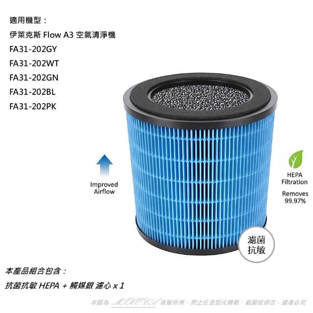 Electrolux 伊萊克斯適用 Flow A3 空氣清淨機 FA31-202GY 202WT 202GN 202BL 濾網 EFFCLN2
