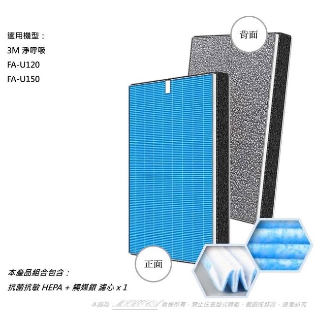 3M抗菌抗敏 適用 淨呼吸 FA-U120 FA-U150 空氣清淨機 U200-F / U200-ORF 濾網 濾心