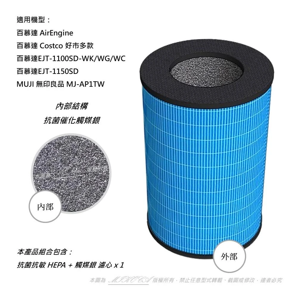 BALMUDA 百慕達抗菌抗敏 適用 AirEngine EJT-1100SD EJT-1100SD-WK EJT-1100SD-WG EJT-1100SD-WC EJT-1150SD Costco 好巿多款 空氣清淨機 濾網 濾心 EJT-S200
