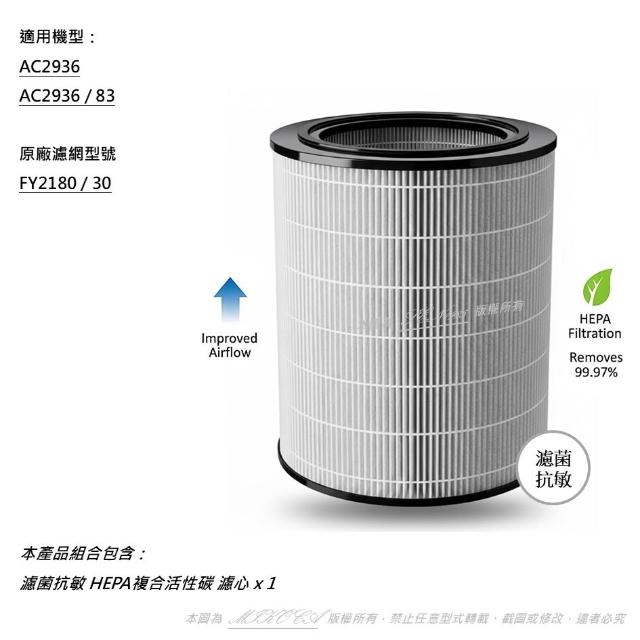Philips 飛利浦抗敏 適用 AC2936/83 空氣清淨機 HEPA 活性碳濾網 FY2180/30 奈米級 濾芯