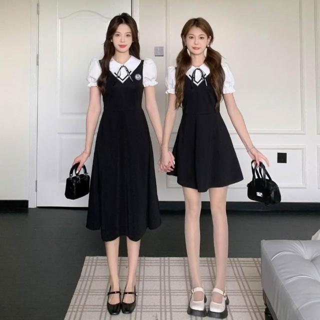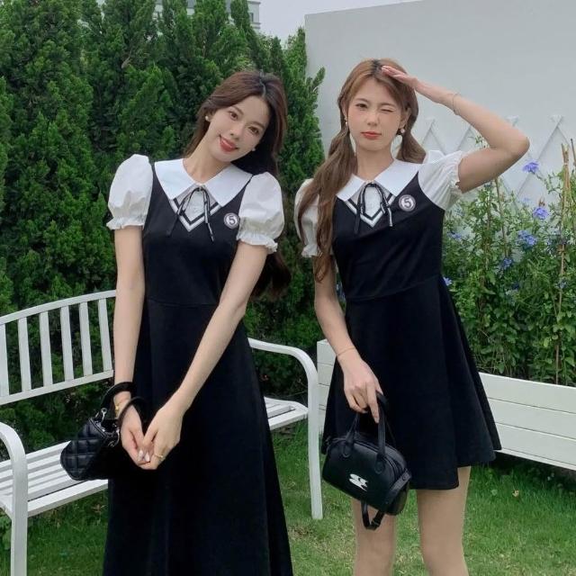 千藝✨大碼連衣裙✨M-5XL加肥加大女裝 大尺碼假兩件收腰長裙 學生制服 西裝裙 高腰裙學院風 修身顯瘦中長裙