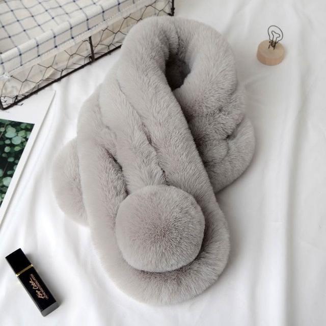 千藝✨台現貨 圍脖圍巾 水貂毛圍巾 交叉 毛絨 保暖 禦寒 護頸 女生圍巾 交叉圍巾 仿獺兔毛 仿草皮