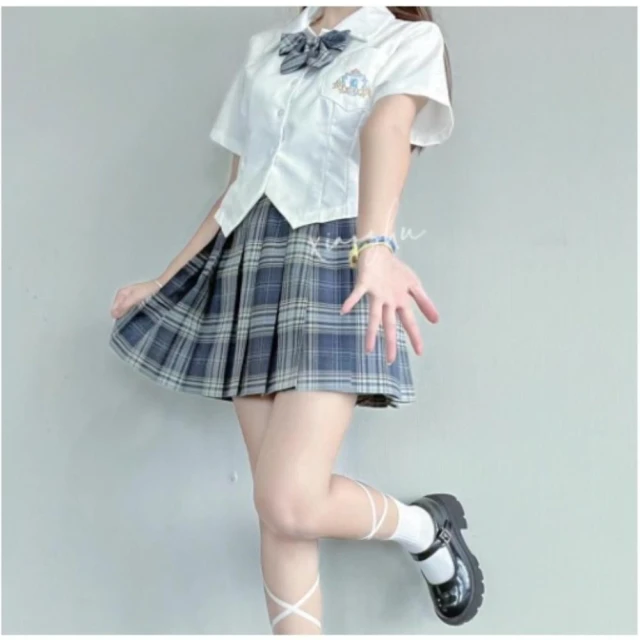 千藝✨襯衫格裙✨百褶裙 制服短裙 學院風國中高校學生服 曬海 學院風套裝日系JK制服✨修身顯瘦 長袖短袖