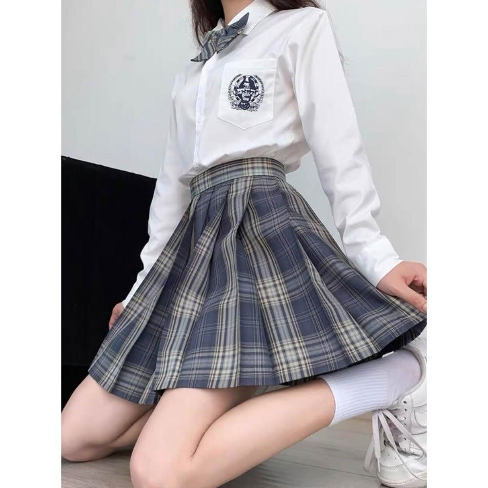千藝✨襯衫格裙✨百褶裙 制服短裙 學院風國中高校學生服 曬海 學院風套裝日系JK制服✨修身顯瘦 長袖短袖