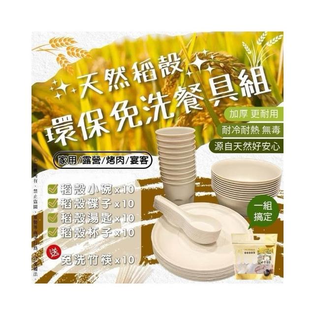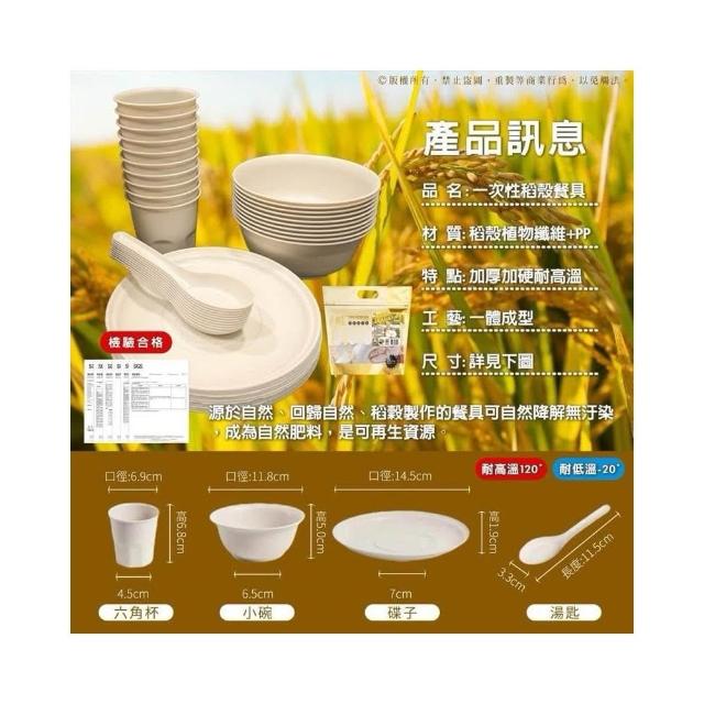 天然稻殼環保免洗餐具組 10人份 中秋烤肉必備
