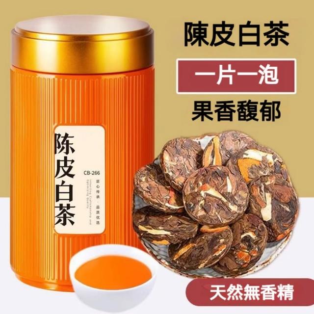 陳皮白茶250g 福鼎老白茶餅 壽眉陳皮老白茶 新會陳皮小茶餅禮罐裝 茶葉禮物禮品