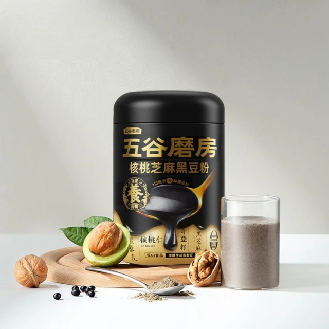 五穀磨房 黑芝麻糊546g 0糖 核桃芝麻黑豆粉 早餐代餐粉 黑芝麻糊沖泡即食免煮芝麻糊