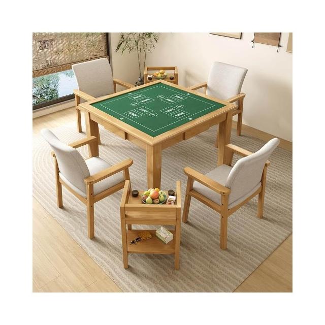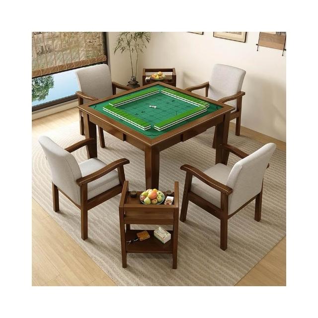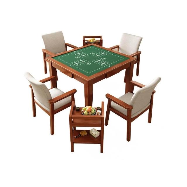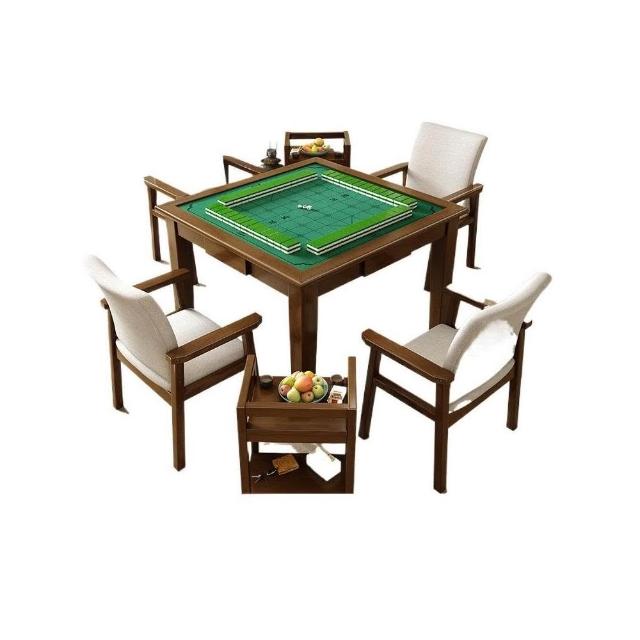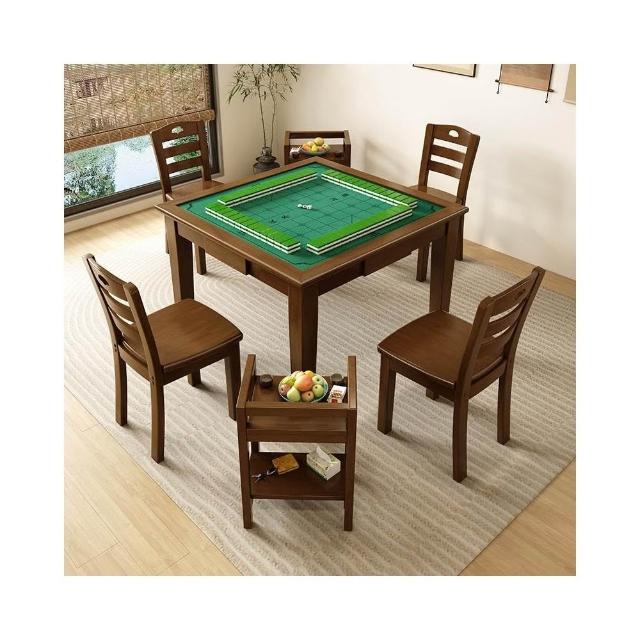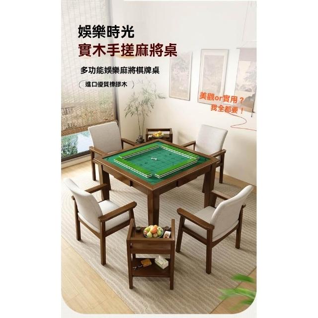 橡膠木實木手動麻將桌家用飯桌老年活動室養老棋牌桌胡桃色多功能