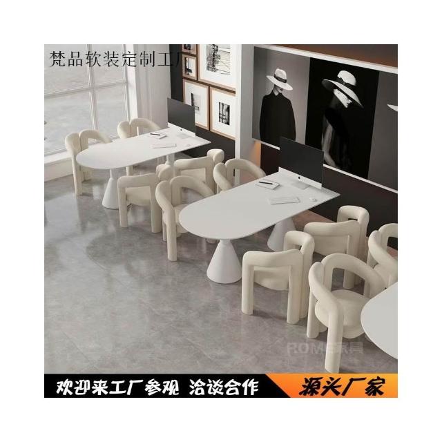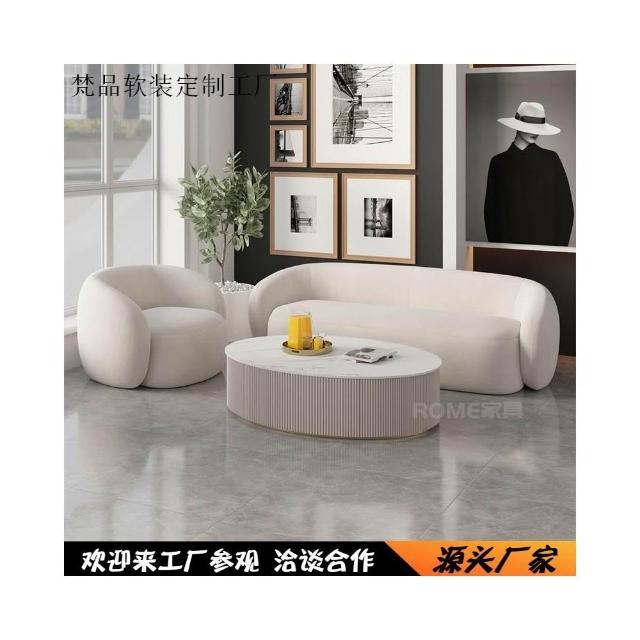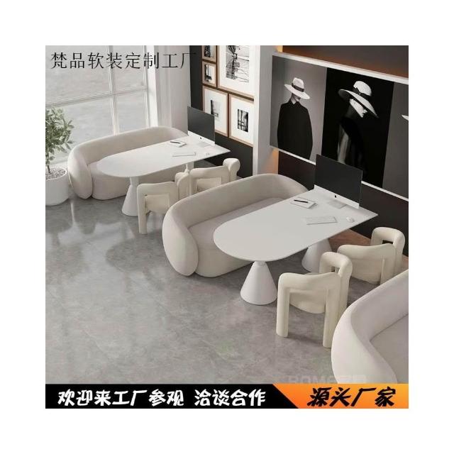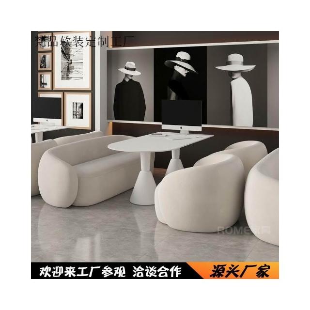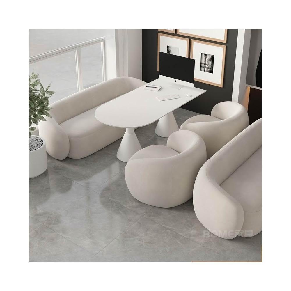 影樓選片休息區接待弧形沙發奶油婚紗洽談美容院桌子茶几組合套裝