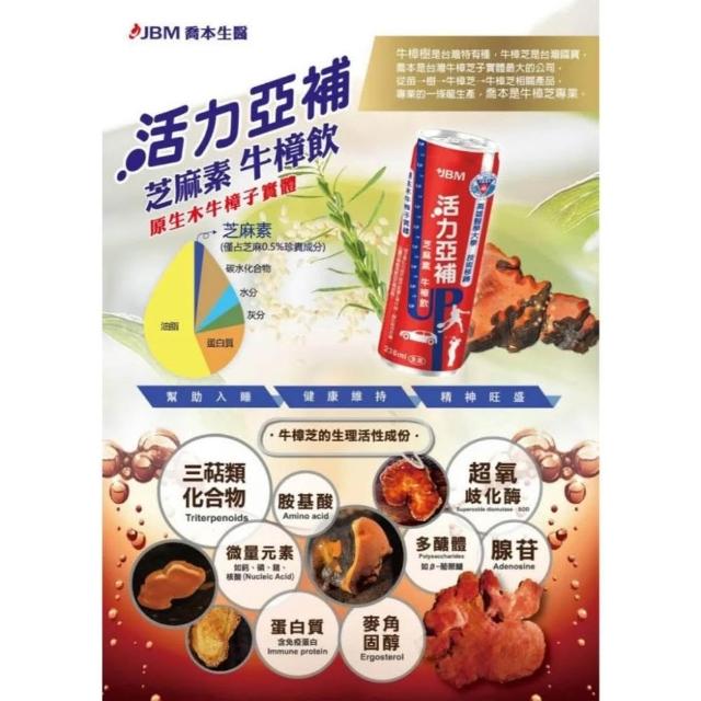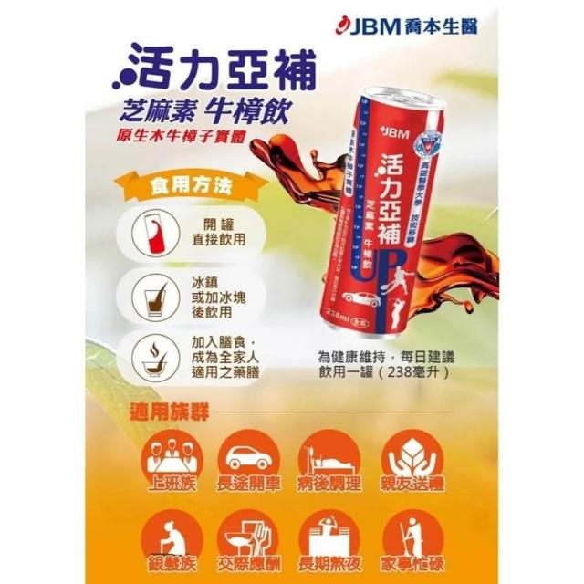宅配免運限2箱 JBM 喬本生醫 活力亞補 芝麻素牛樟飲 238ml24罐人蔘萃取 紅景天 B群
