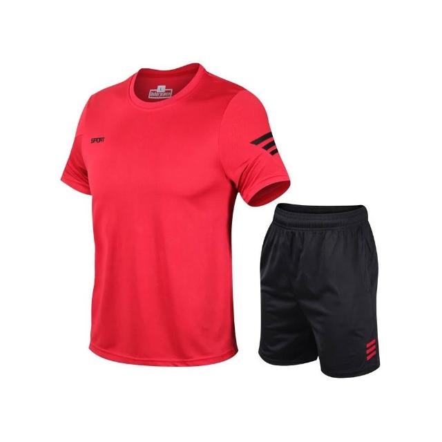 健身運動套裝男夏季健身短袖運動短褲舒適兩件套男士速乾衣服跑步寬鬆休閑運動服大碼