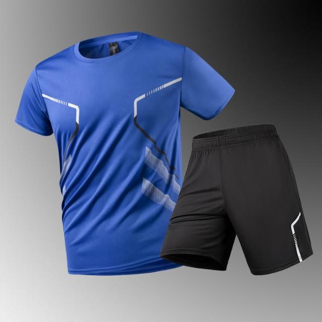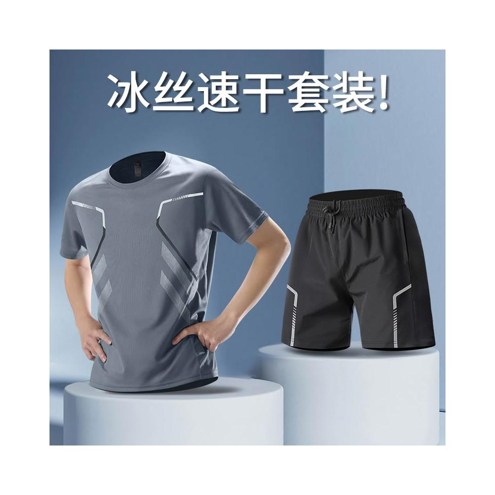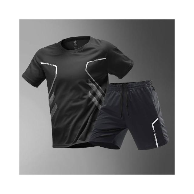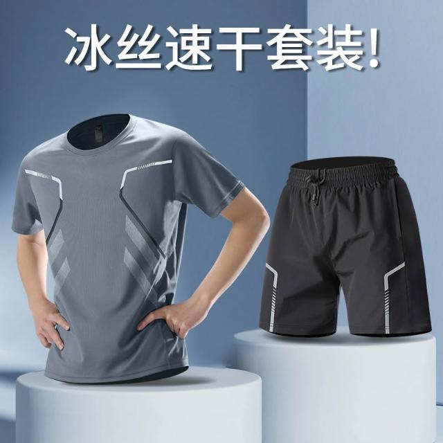 夏季新款運動健身套裝男夏季健身短袖T恤短褲兩件套男士速乾衣服跑步休閑運動服