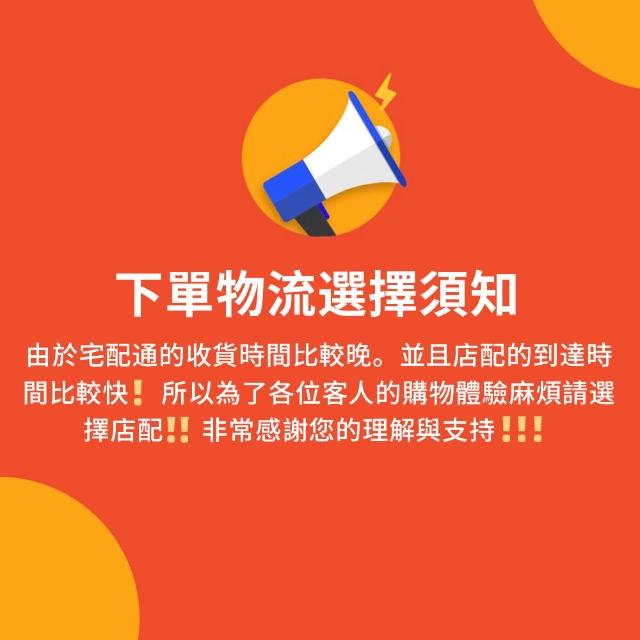 - 針對大型商品(包括:大型家電、家具床墊、健身按摩器材、車類...等),商店將於完成收款確認後,一天內〈不含例假日〉將會有專人與您確認相關配送細節等的聯繫。偏遠地區、樓層費及其它加價費用,皆由商店於約定配送時一併告知,商店將保留出貨與否的權利。