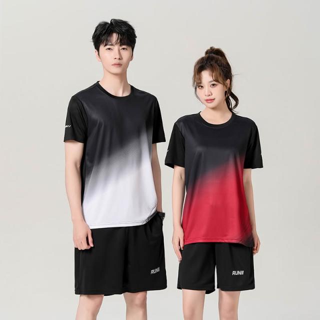 運動套裝男女夏季健身短袖T恤男士速乾衣服羽毛球服跑步寬鬆休閑運動服大碼