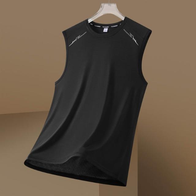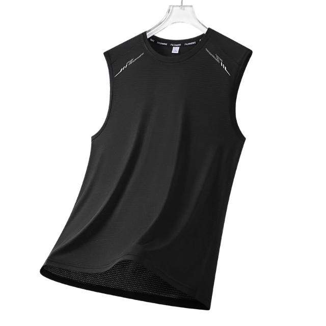 夏季新款運動背心男寬鬆夏季籃球跑步健身無袖t恤速干短袖冰絲男士冰絲背心打底衫