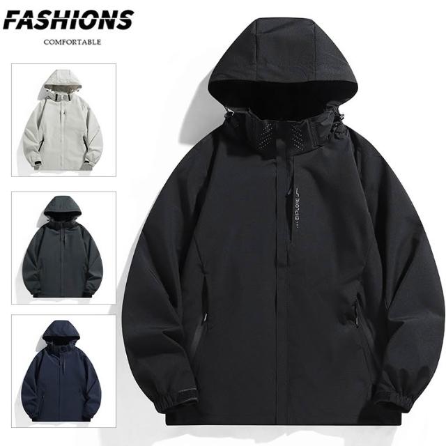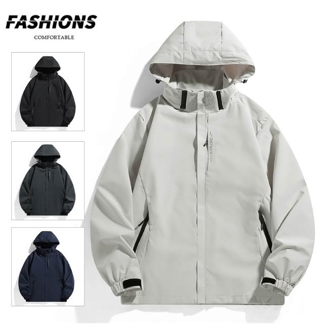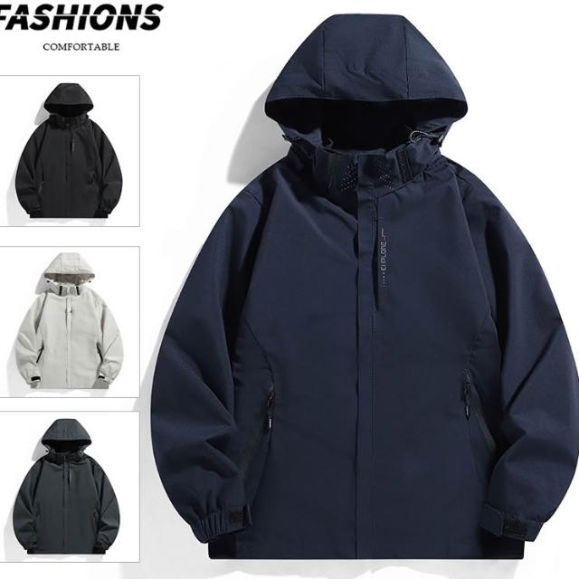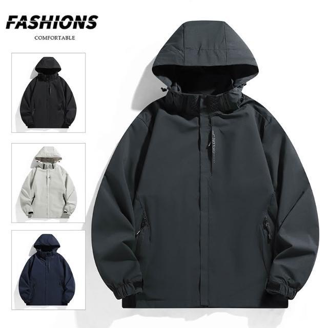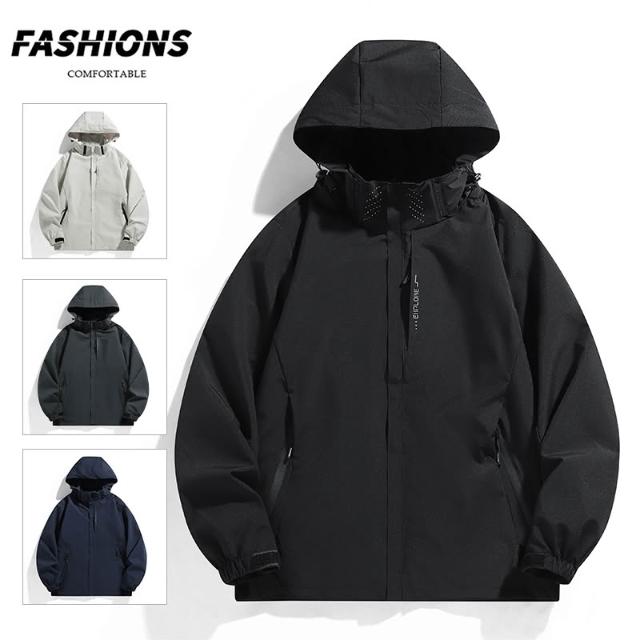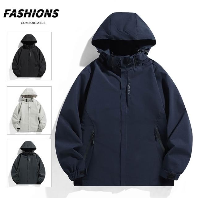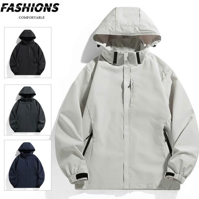 秋季爆款男士夾克立領連帽戶外夾克衫單層防風衝鋒衣可卸帽運動刺繡款休閑百搭男士外套