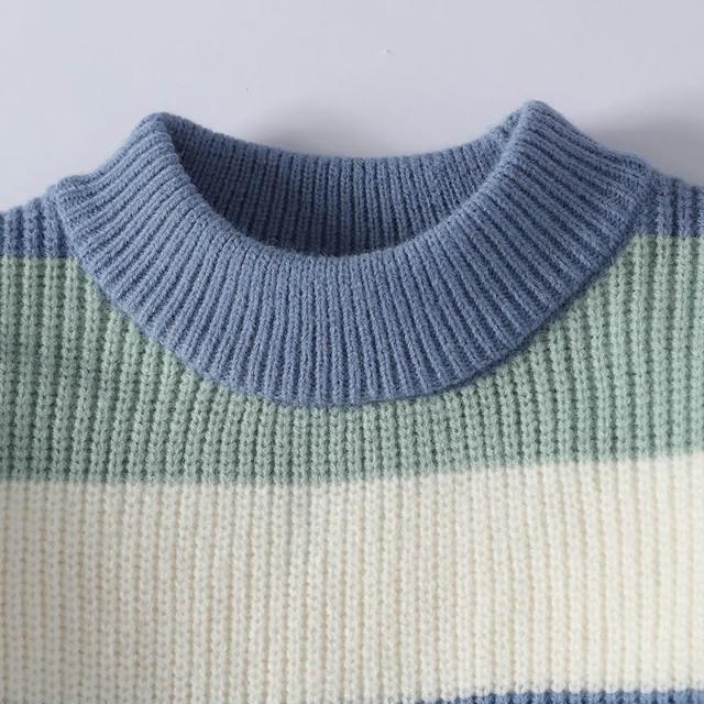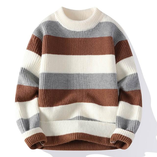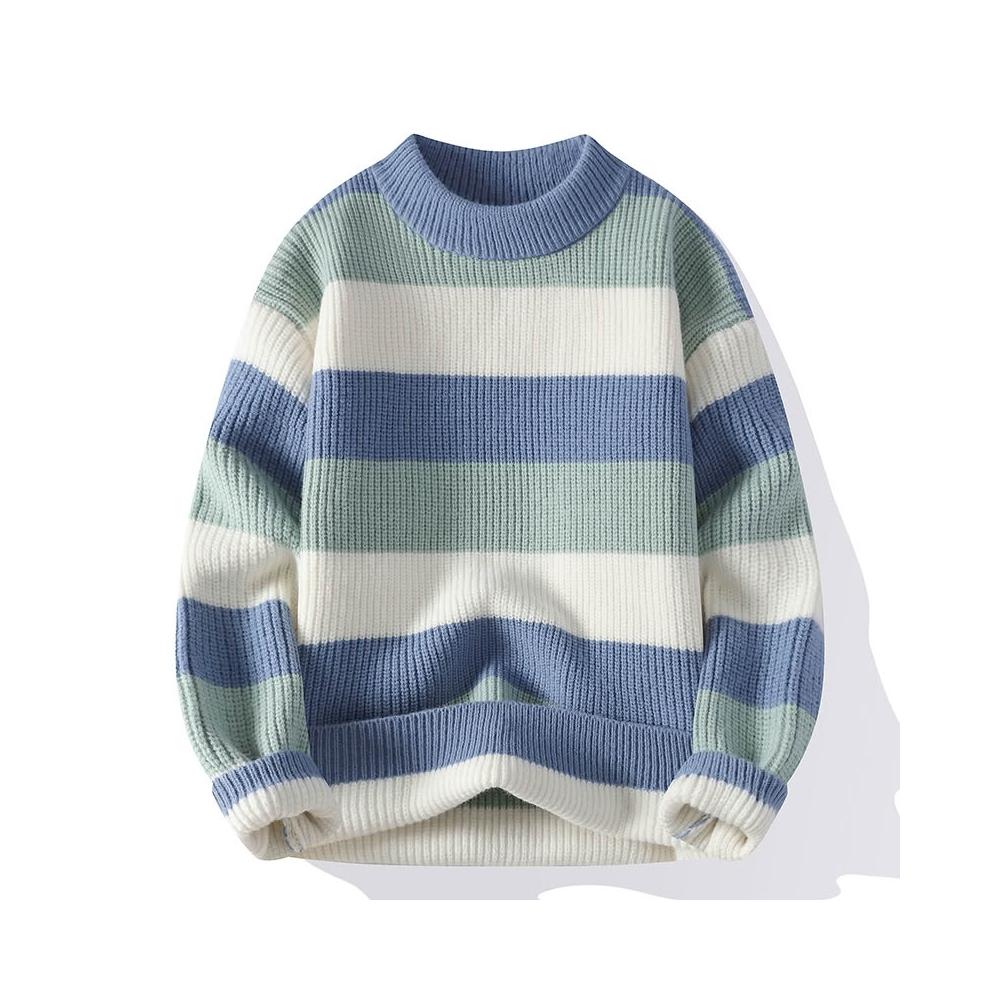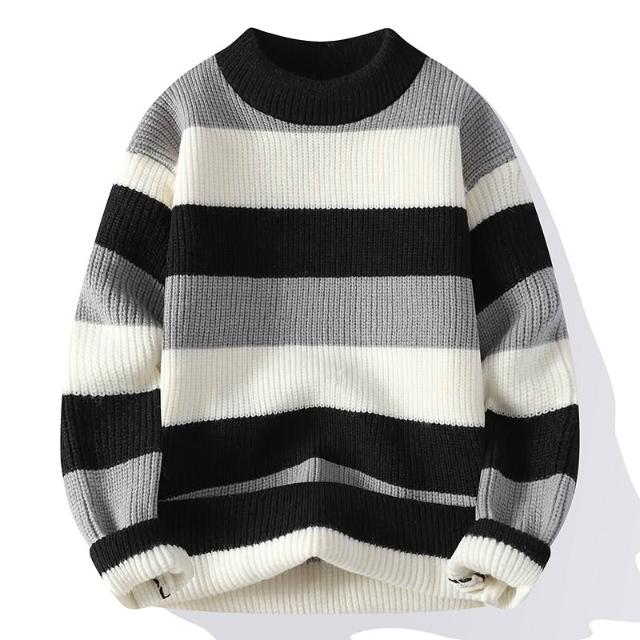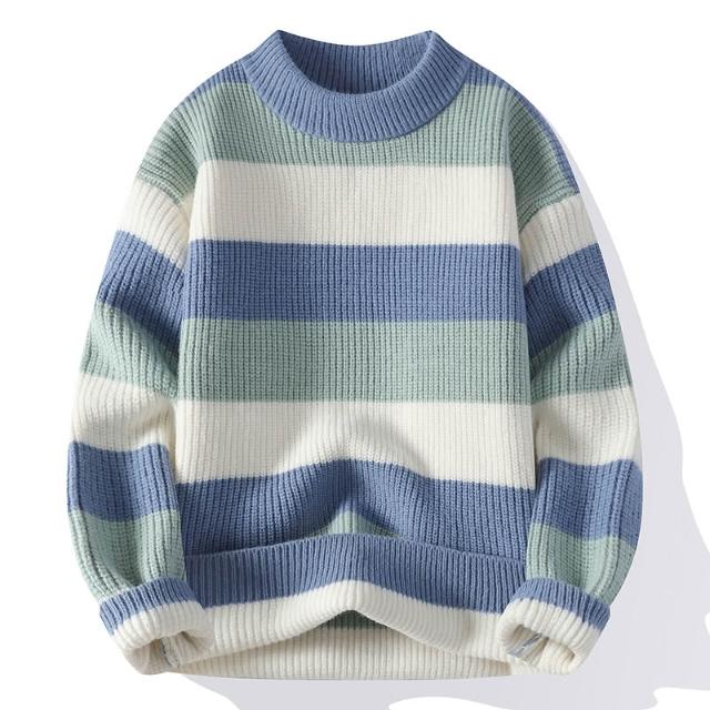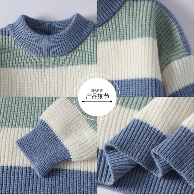 秋冬男士毛衣港風復古拼色條紋毛衣設計感百搭休閑時尚潮流寬鬆針織衫男