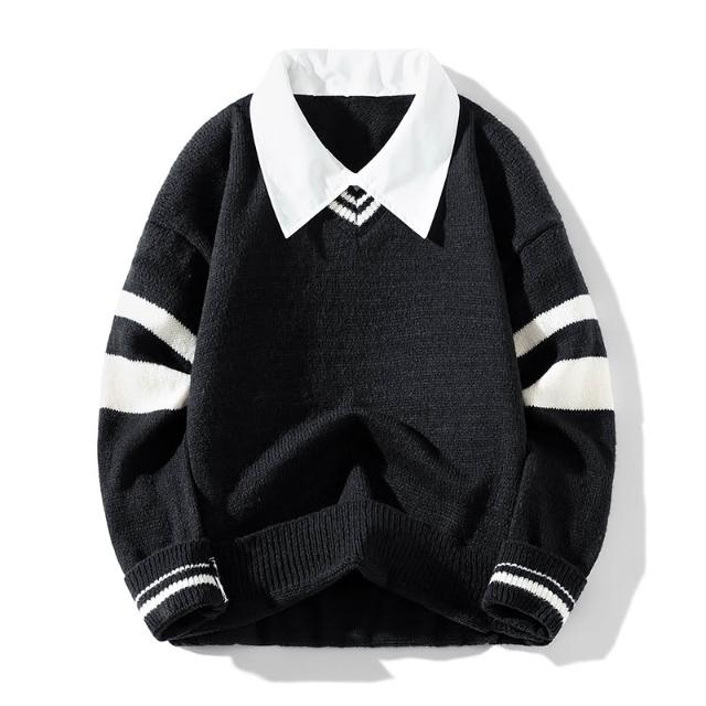 假兩件襯衫領毛衣男針織學生打底衫外套時尚潮流舒適衛衣團體服秋冬新款