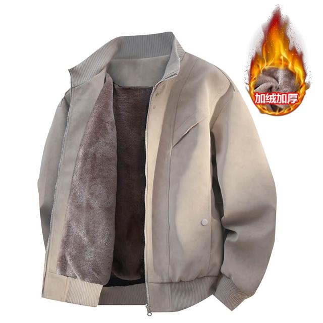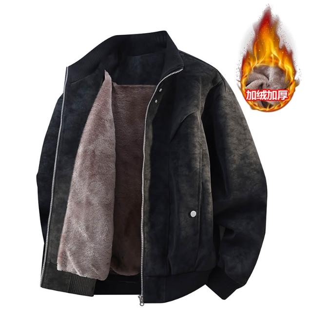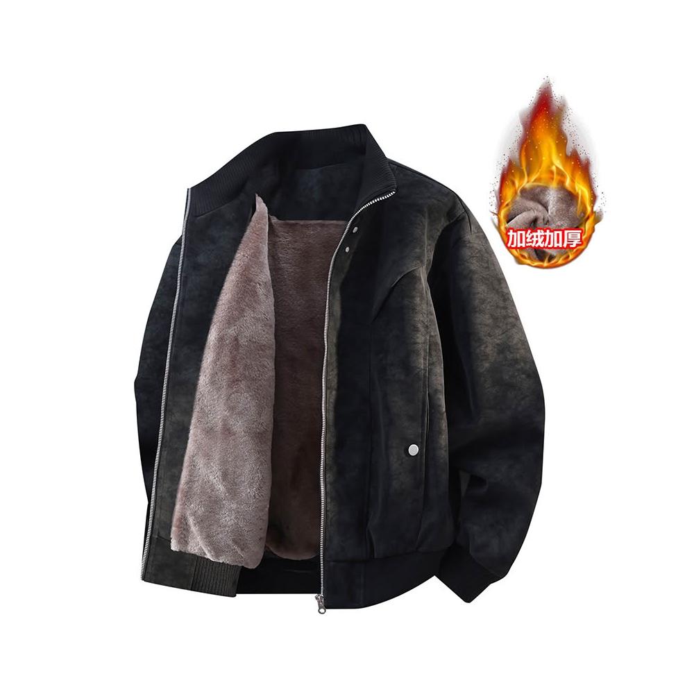 秋冬新款加絨夾克男麂皮絨加厚保暖皮衣寬鬆棉衣港風外套立領皮夾克