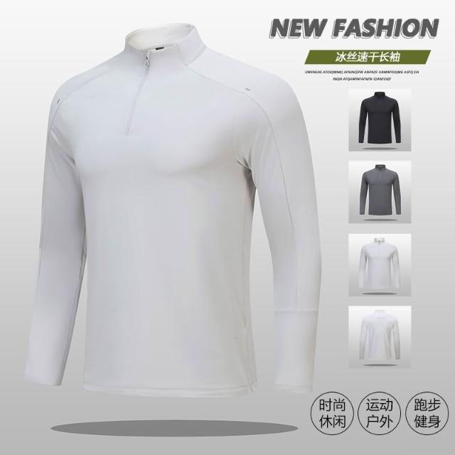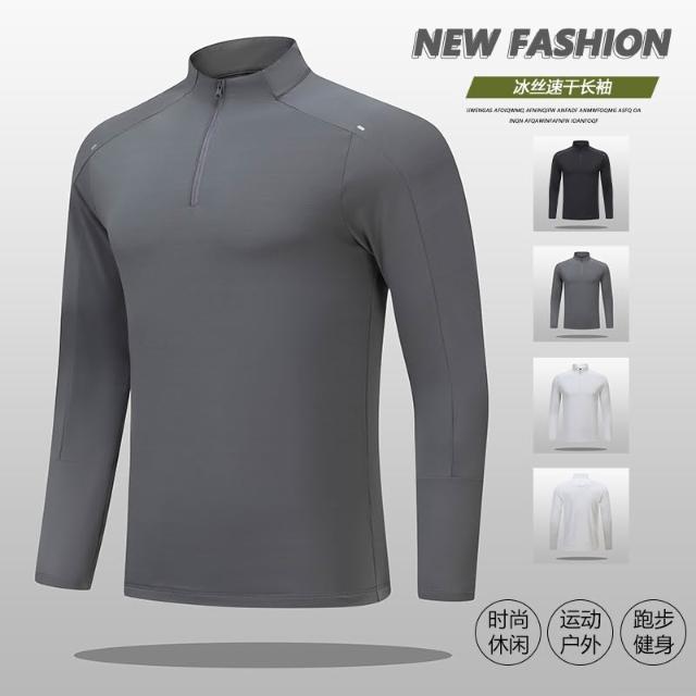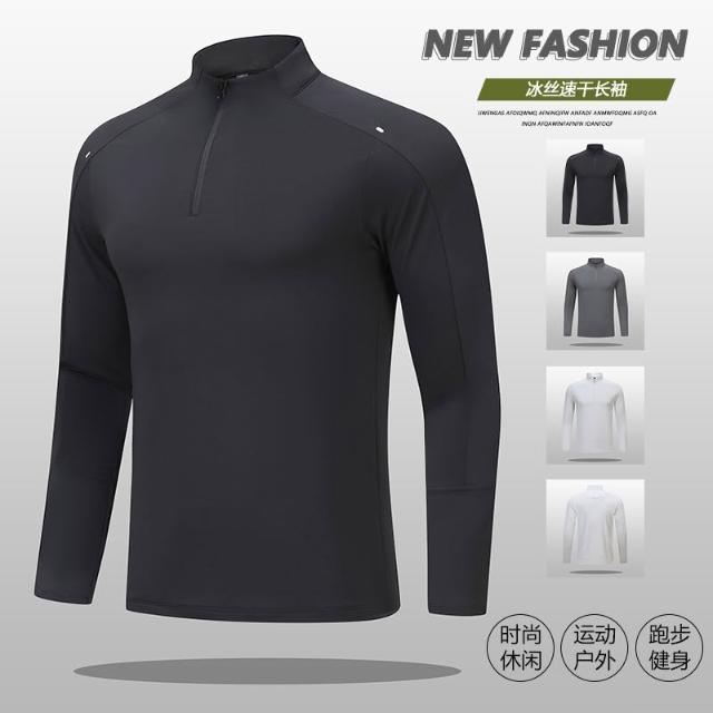 新款立領T恤戶外運動跑步健身速乾衣半拉鏈男士時尚潮流透氣彈力緊身T恤