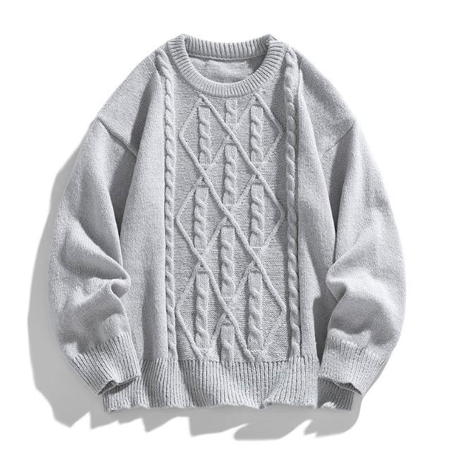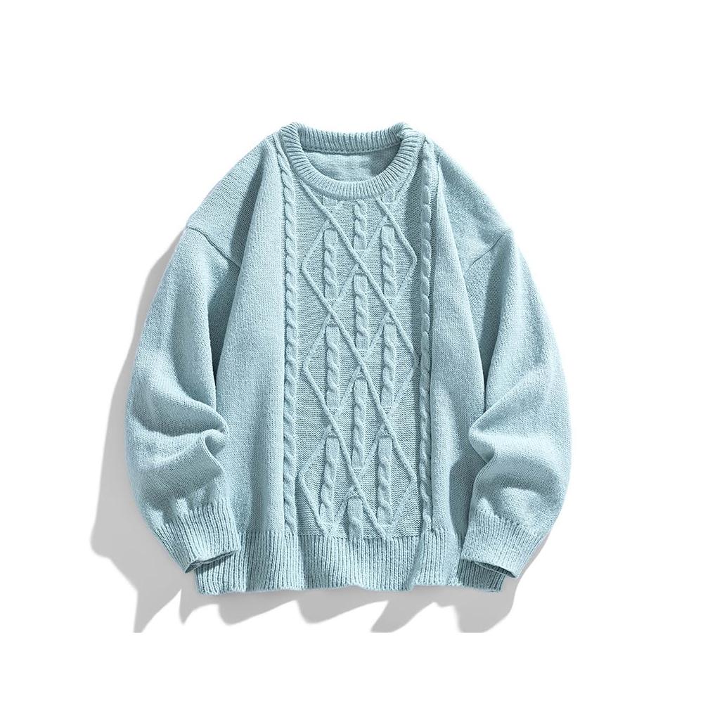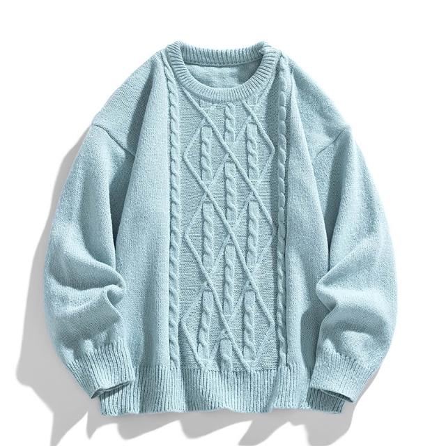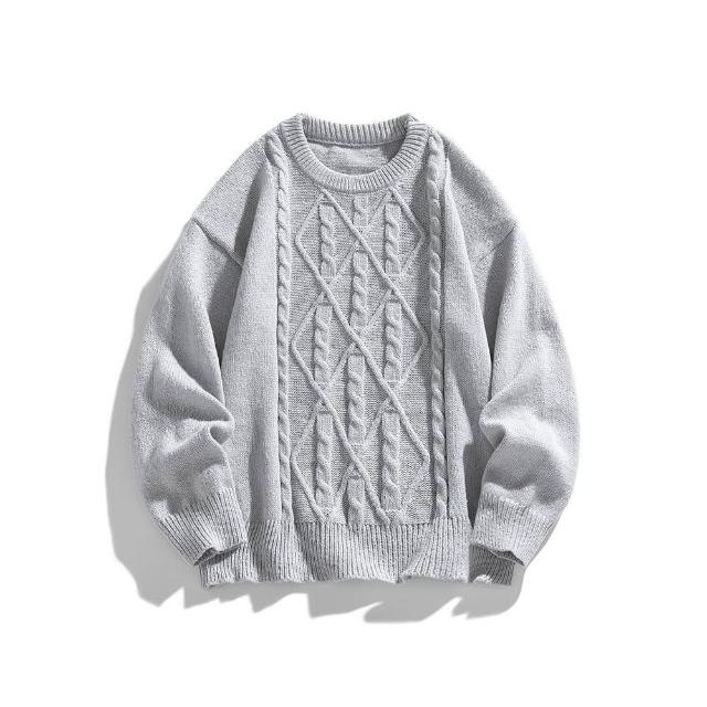 圓領絞花針織衫毛衣男新款麻花條紋套頭打底衫秋冬上衣衛衣男復古保暖時尚上衣