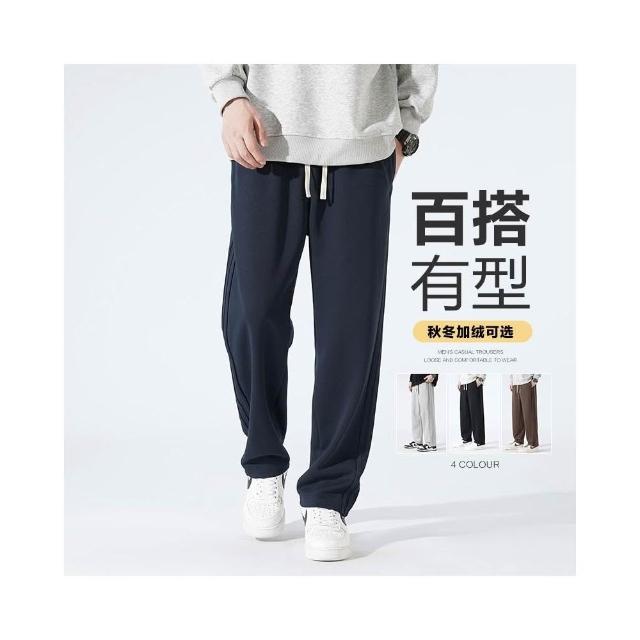 春季純棉直筒衛褲男夏季垂感新款重磅灰色休閑長褲運動褲學生寬鬆闊腿褲子