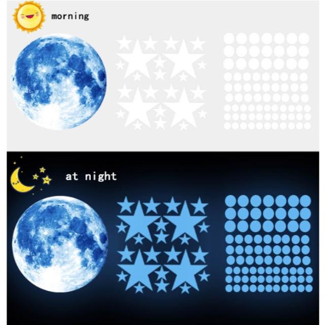 《極光》夜光貼紙系列 星星月亮太空圓點/藍粉綠三色 吸收光線蓄能後發光