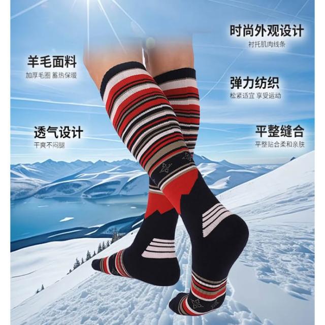 《極光》戶外機能羊毛滑雪襪/加厚毛圈長筒襪/美利奴羊毛襪/專業滑雪襪 保暖透氣/親膚高彈