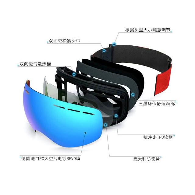 《極光》HX06 雙層防霧雪鏡/亞版成人滑雪鏡 外層德國PC片鍍REVO膜+內層義 (抗UV400/可配戴眼鏡)