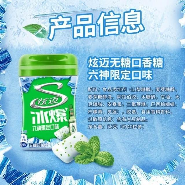 水水臻選 炫迈口香糖无糖冰爆六神限定口味咖啡薄荷味40粒瓶装零食清新口气