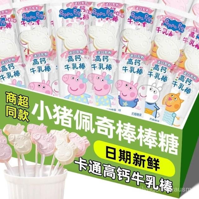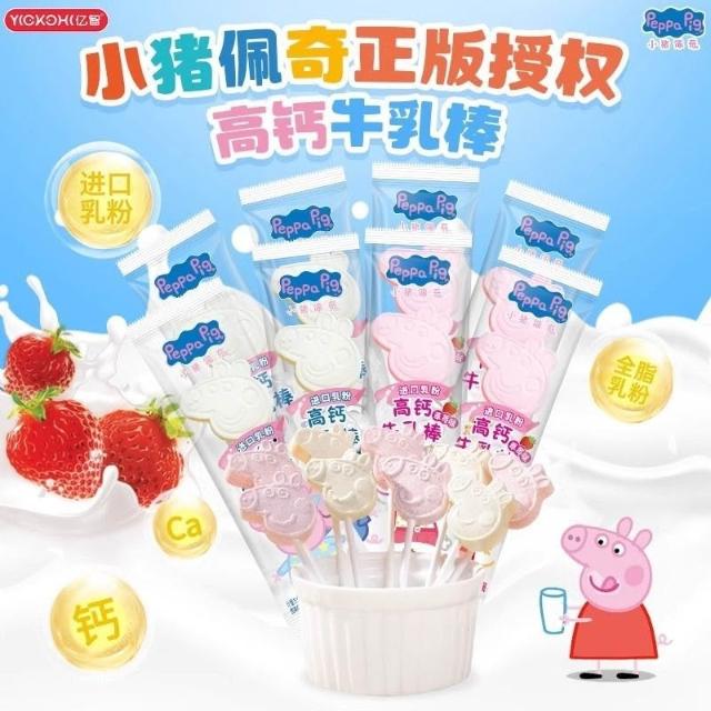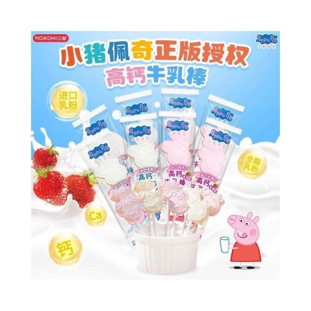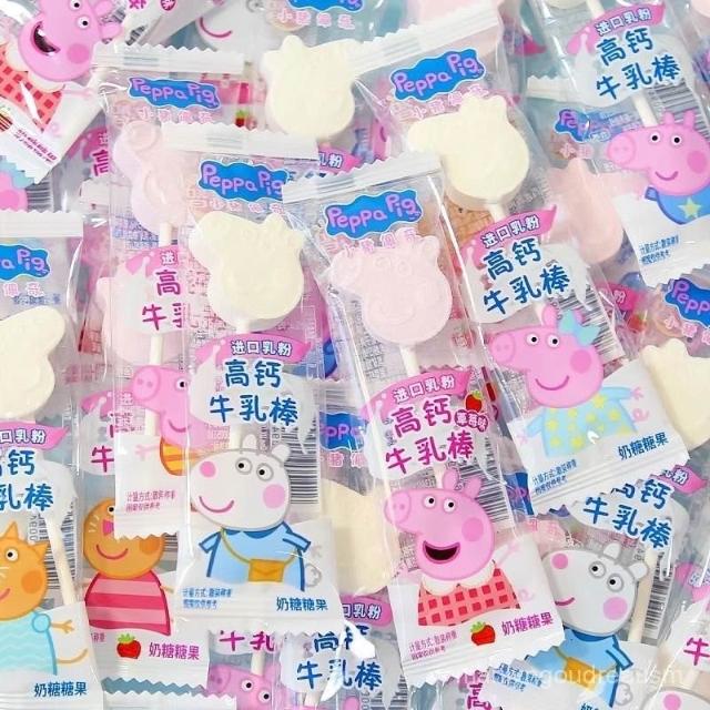 小桃喜小豬佩奇棒棒糖牛乳奶棒草莓壓片糖果牛奶包裝兒童零食品
