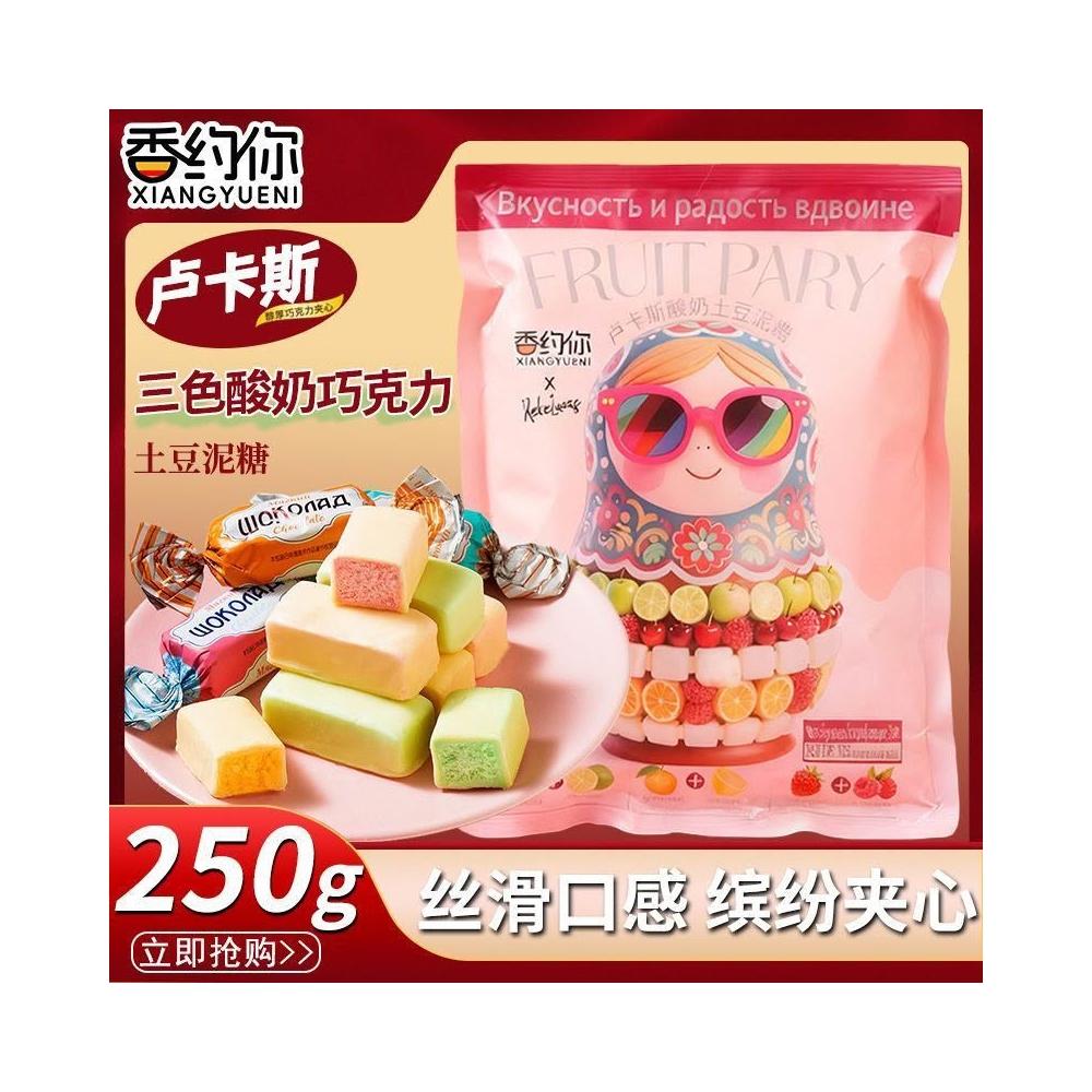 小桃喜盧卡斯風味酸奶巧克力三色夾心糖果喜糖聖誕年貨節休閒零食