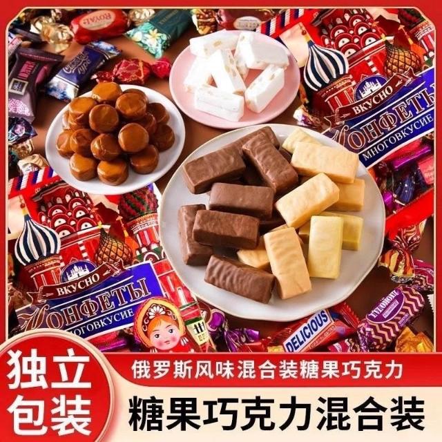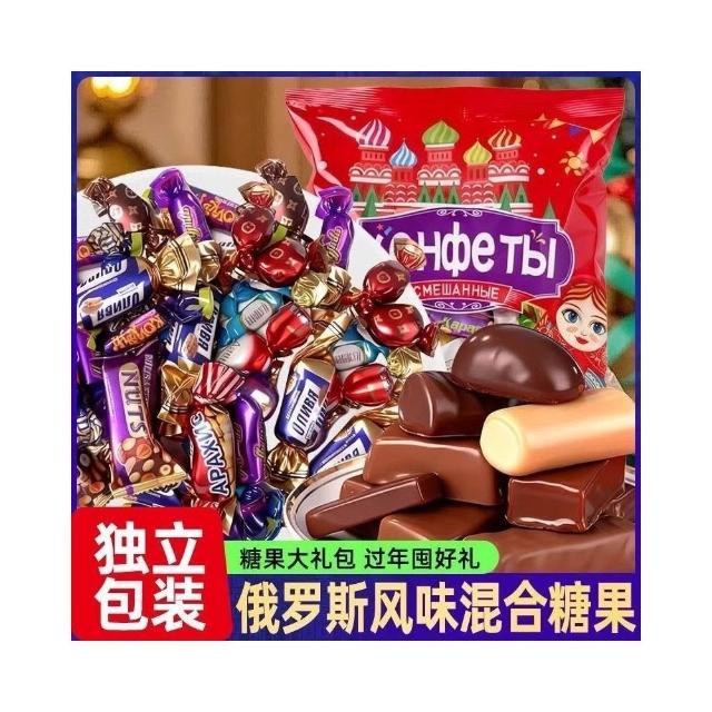 小桃喜俄羅斯風味混合糖巧克力多口味夾心牛扎糖太妃糖喜糖年貨零食禮包