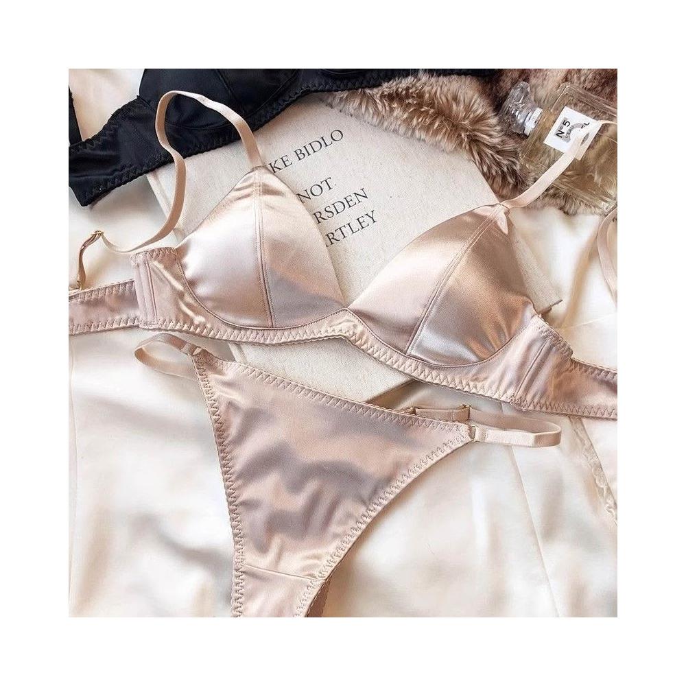 明明嚴選法式性感三角杯內衣女薄款聚攏防下垂無鋼圈舒適無痕緞面文胸套裝