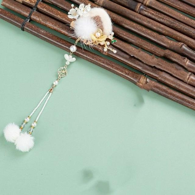 明明嚴選古風漢服可愛唯美秋冬貓耳日常漢服搭配流蘇可愛兒童頭飾毛絨對夾