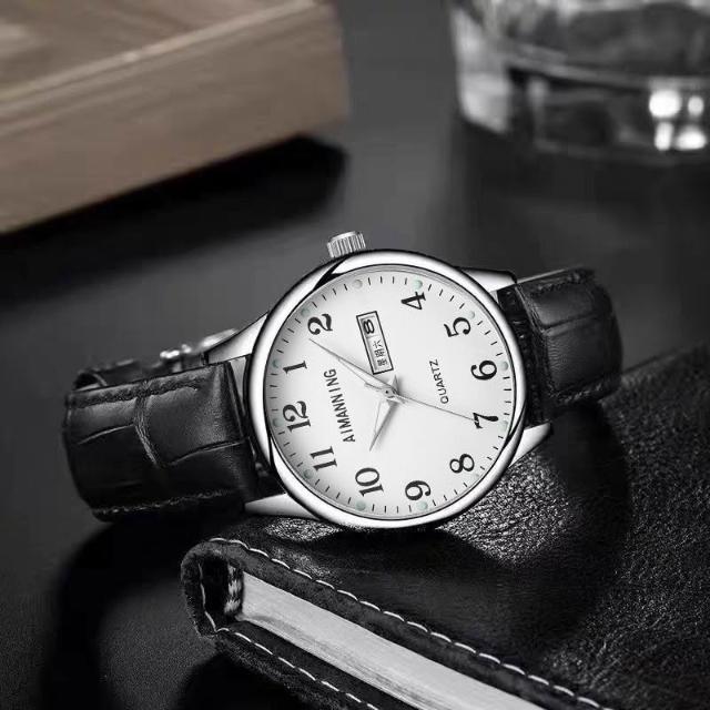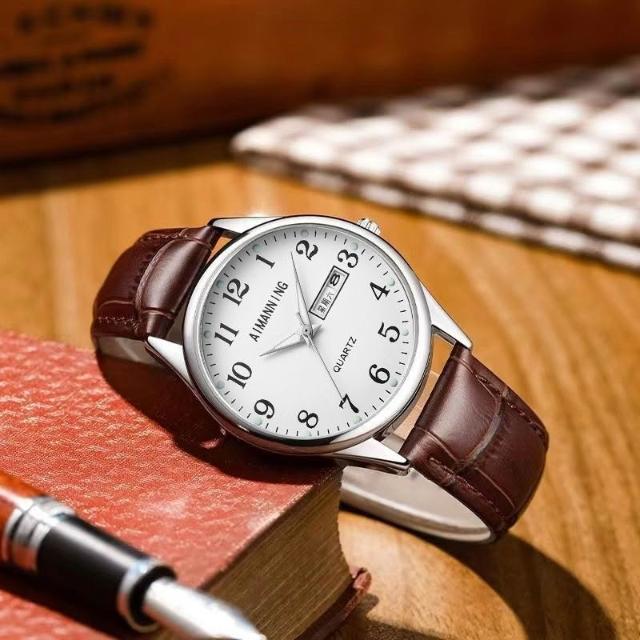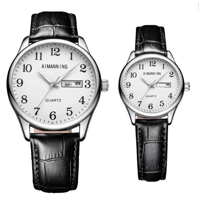 明明嚴選【48小時內發貨】ins防水帶星期雙歷夜光情侶手錶對錶韓版簡約潮流男女學生考試表