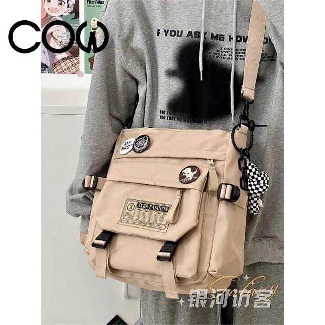 明明嚴選【24小時內發貨】【COW】日系ins潮流復古中性包學生上課補習手提袋百搭通...