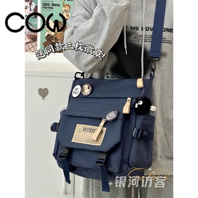 明明嚴選【24小時內發貨】【COW】日系ins潮流復古中性包學生上課補習手提袋百搭通...