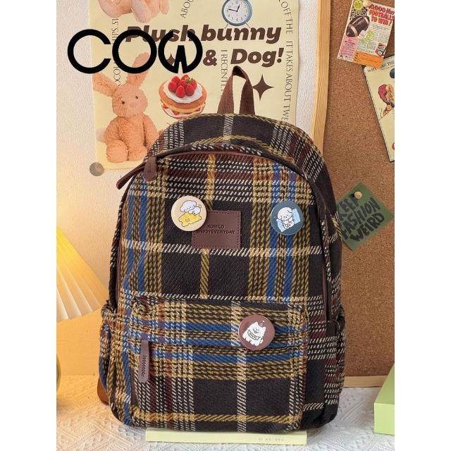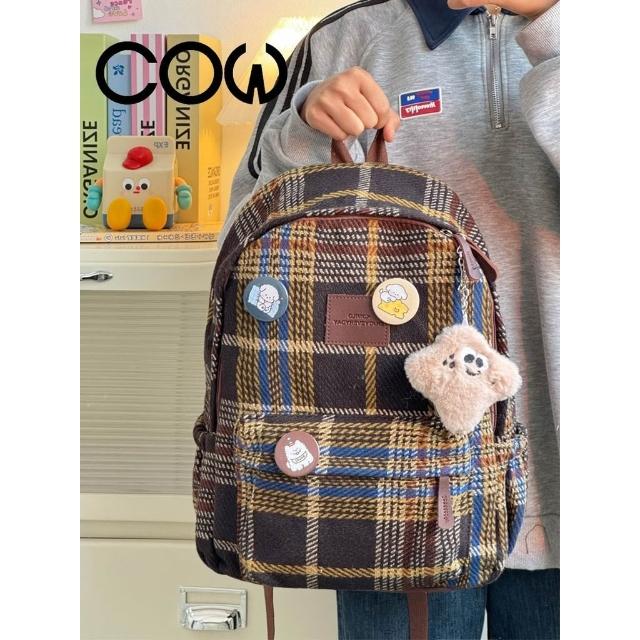 明明嚴選【COW】日系ins秋冬毛呢復古格子書包高中生大學生雙肩包韓版揹包百搭