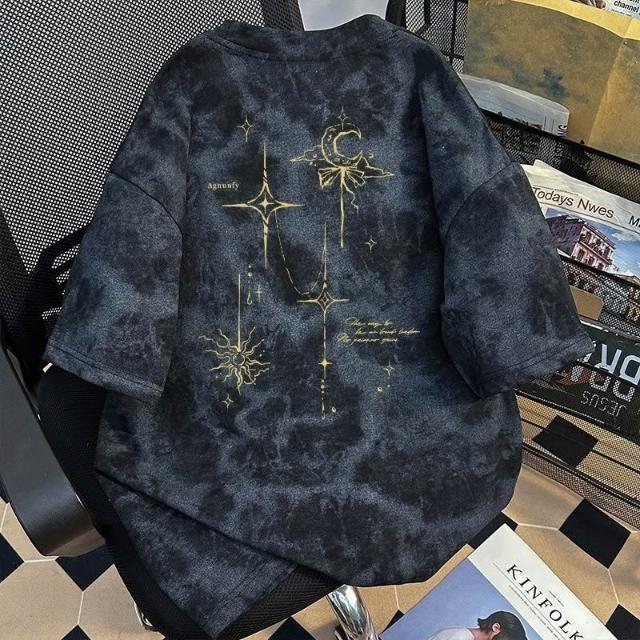 单单甄選扎染美式復古潮牌短袖t恤男女2026夏季寬鬆半袖設計感小衆外穿