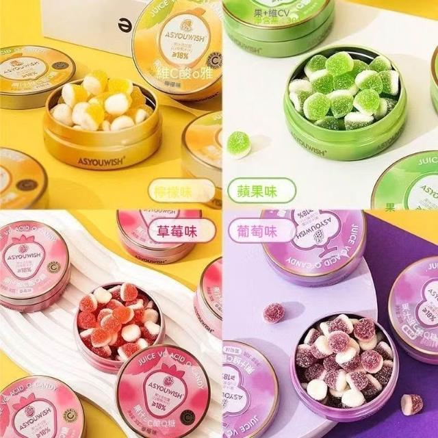 单单甄選維c果汁酸Q糖鐵盒裝葡萄味檸檬軟糖方便隨身攜帶軟砂糖零食批發