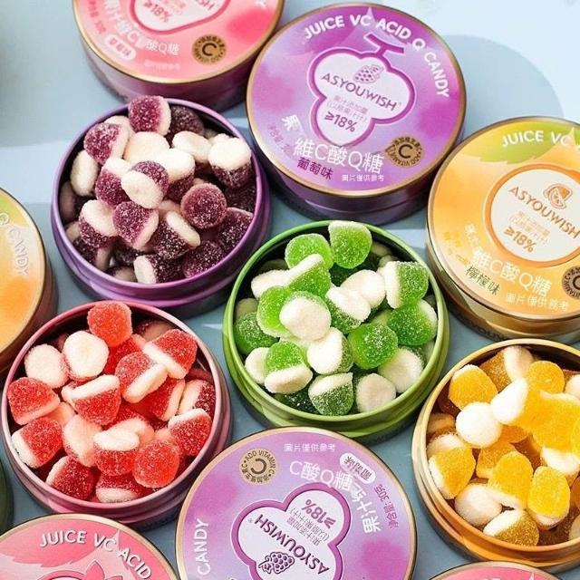 单单甄選維c果汁酸Q糖鐵盒裝葡萄味檸檬軟糖方便隨身攜帶軟砂糖零食批發