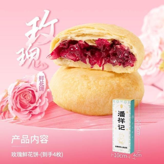 单单甄選潘祥記玫瑰鮮花餅4枚裝雲南特產玫瑰鮮花餅下午茶糕點心休閒零食