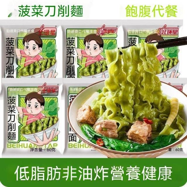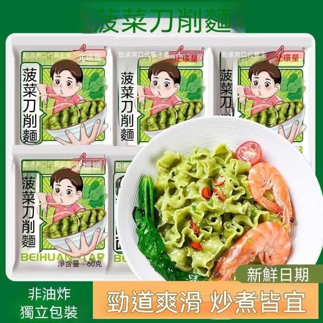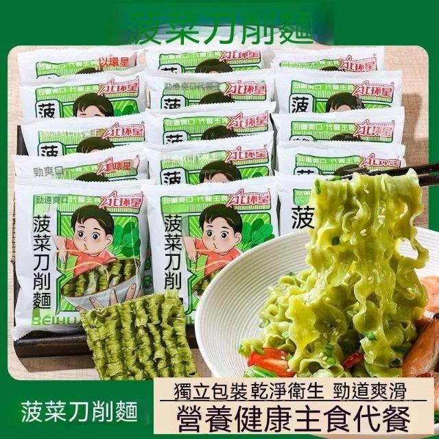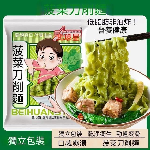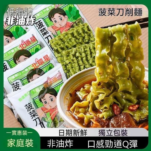 单单甄選菠菜刀削麪寬面非油炸方便麪條商用火鍋麻辣燙麪塊家庭營養早餐面